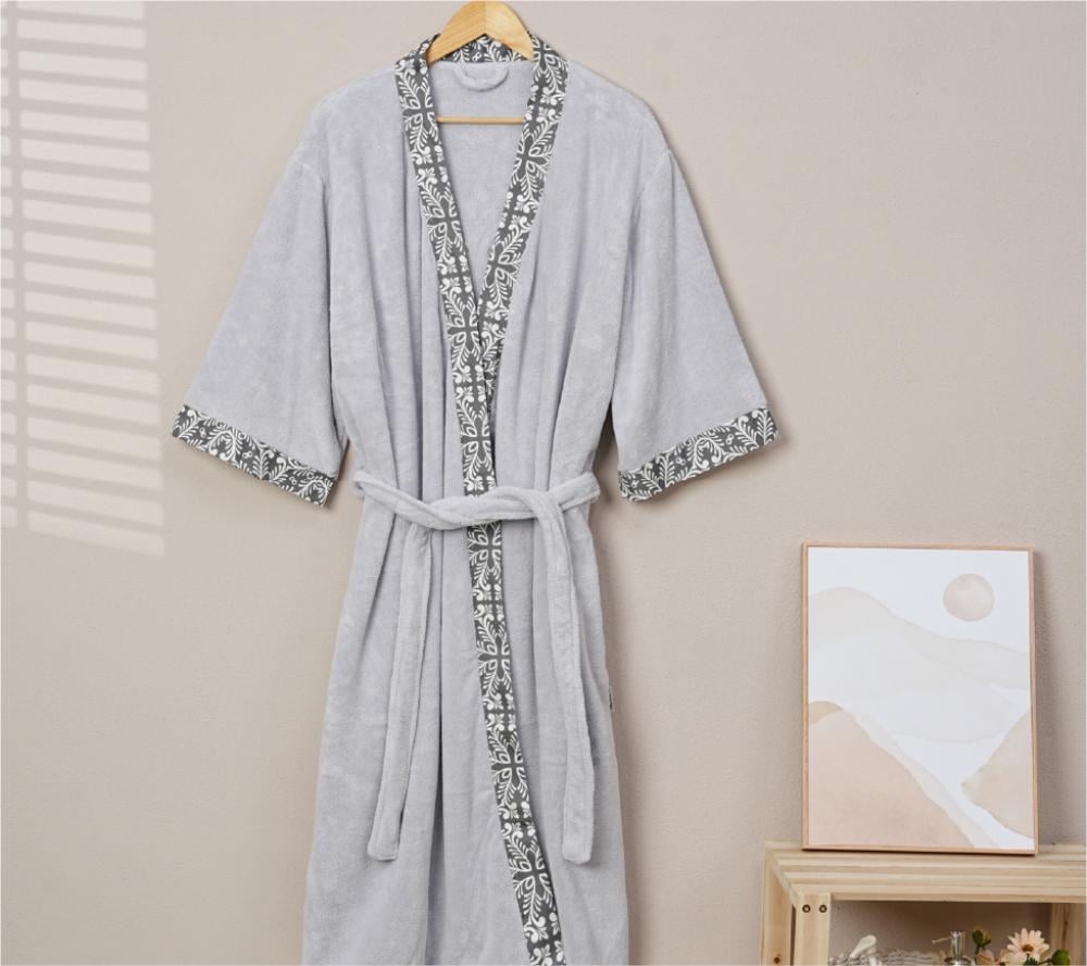 روب حمام بحافة مزخرفة كبار قطعة واحدة لارج رصاصي