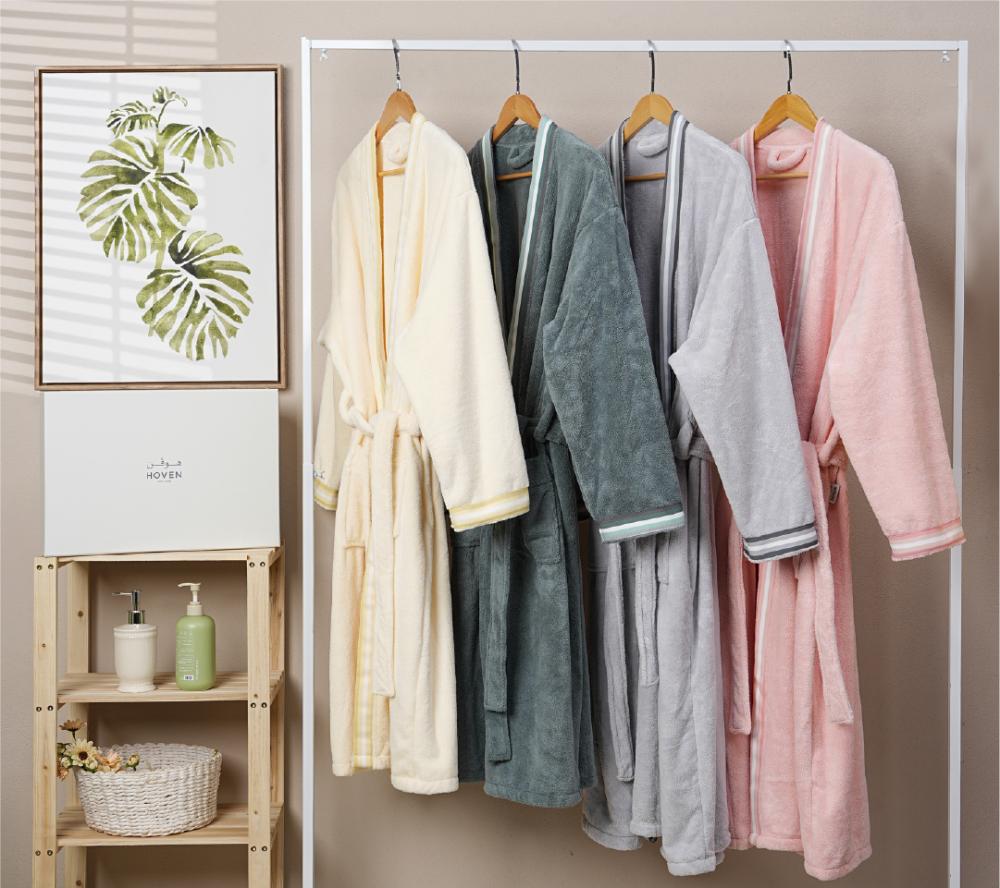 تم تصميم الارواب من خامة مايكروفايبر عالية الجودة تمتاز بملمسها المخملي الناعم وخفتها على الجسم، لتمنحك إحساسًا مريحًا كلما ارتديته.