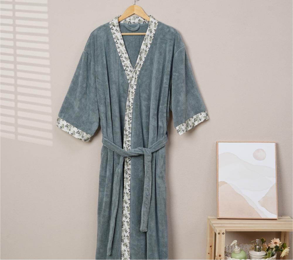 Wrap yourself in comfort and sophistication with the HOVEN Light Green Decorative Edge Bathrobe.