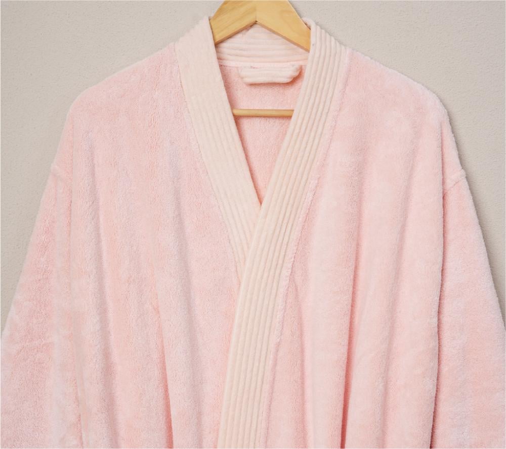 اجعلي لحظات استحمامك أكثر راحة وأناقة مع روب حمام هوفن الوردي (L). خامة فاخرة، تصميم أنثوي، ولمسة من الفخامة اليومية التي تستحقينها.