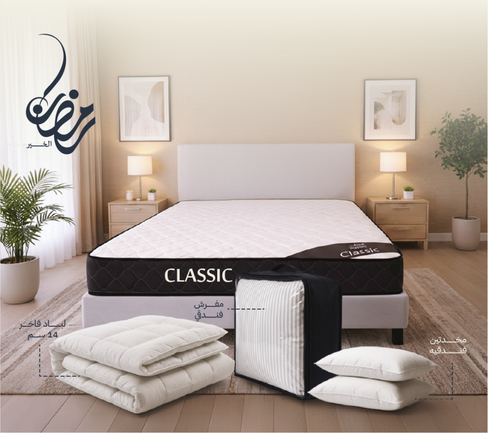 لا تفوت فرصة تحويل غرفة نومك إلى جناح فندقي فاخر اطلب بكج مرتبة كلاسيك من هوفن اليوم واستيقظ بطاقة جديدة كل صباح!