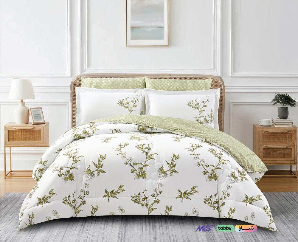 • تصميم أنيق بنقشة زهور خضراء تضفي لمسة مميزة على غرفة نومكِ.