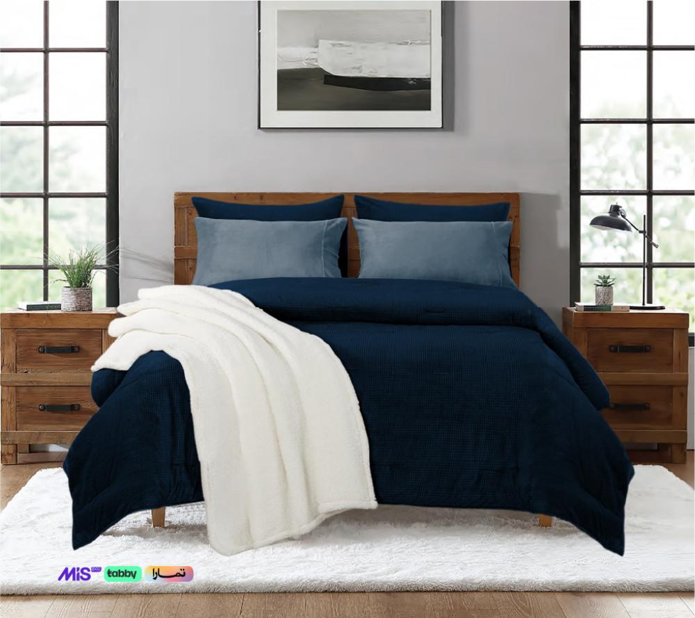 امنحي نفسك تجربة نوم دافئة وملكيّة مع مفرش هينيمو الكحلي الشتوي الذي يجمع بين الفخامة، الراحة، والجودة العالية.