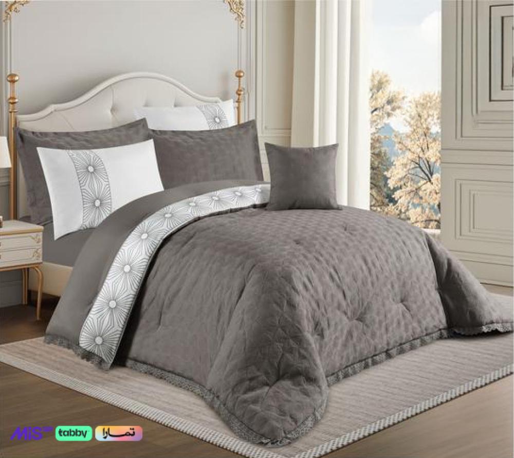 أضيفي لمسة من الأنوثة والدفء إلى غرفتكِ مع مفرش سرير كبير الرمادي. الكمية محدودة لا تفوّتي الفرصة واطلبي الآن لتحصلي على طقم متكامل يعكس ذوقكِ الرفيع.