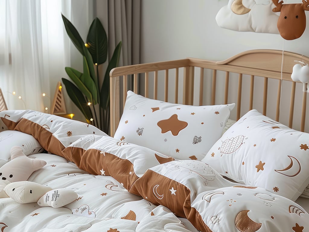 - تتوفر خيارات مفارش أطفال بألوان وتصاميم جذابة مقاومة للاتساخ
