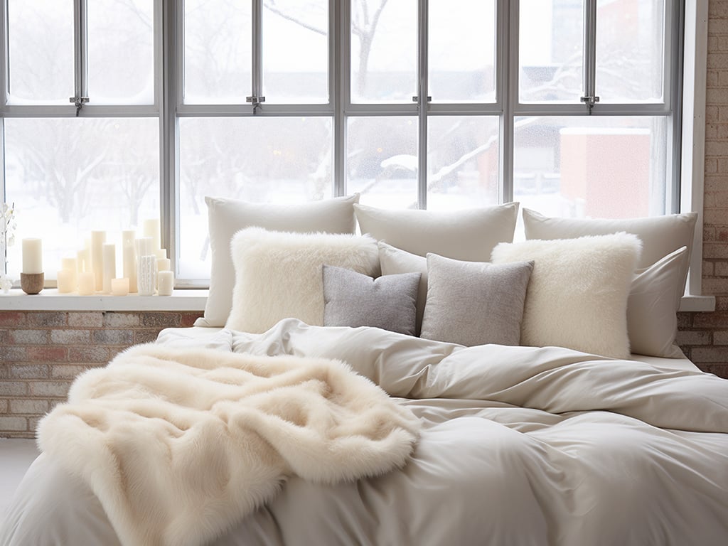 - اختاري مفرشًا من مفارش شتوية دافئة وفاخرة بخامة فرو ناعمة أو قطن طبيعي فخم ليجمع بين الراحة والمظهر الجمالي.